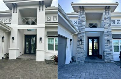 Add a stone façade to the front of your home, enhance a fireplace or fire pit, or add stone to a TV entertainment wall on your lanai. Many travertine or stone choices to match your style and décor.